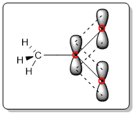 The negative charge of the oxygen atom is spread over three atoms (one carbon and two oxygen atoms). The resonance hybrid has the following orbital structure: