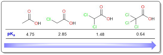 It can be seen in the examples above that the acidity increases as the number of chlorine atoms increases.