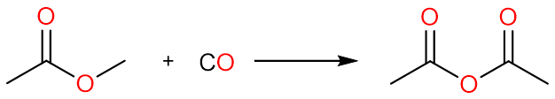 An excellent industrial process for the production of acetic anhydride is the carbonylation of methyl acetate to yield acetic anhydride. The reaction is carried out under anhydrous conditions using a rhodium(III) chloride catalyst.