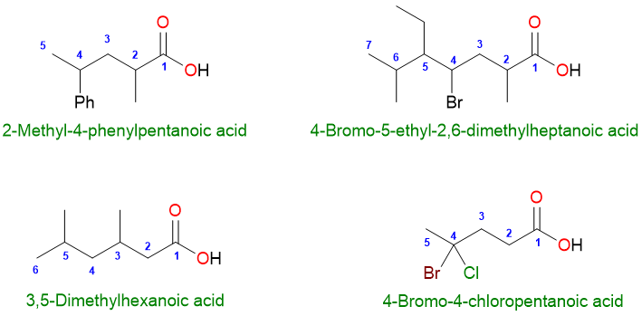 The IUPAC nomenclature of carboxylic acids uses the root name of the alkane that corresponds to the longest and continuous chain of carbon atoms. The name is written as “alkanoic acid”.