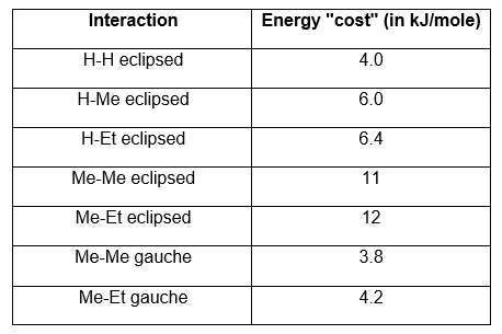 Using the chart below, estimate the relative energy of the following conformation of 2- methylbutane.