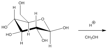 Choose the major product formed when glucose is treated with methanol in the presence of acid.