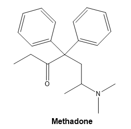 molecular formula for Methadone, a synthetic opioid drug prescribed to alleviate severe pain and to assist in the treatment of drug addiction.